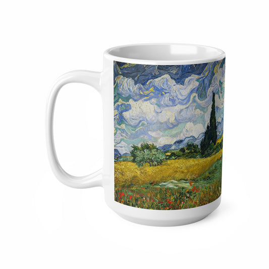 Van Gogh's Wheat Field with Cypresses (1889) - Sunset Fine Art Print Ceramic Coffee Mugs, 11oz, 15oz